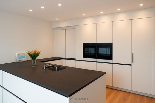 Het appartement beschikt over een grote open keuken die aansluit op een ruime en lichtrijke leefruimte. Verder zijn er vier volwaardige slaapkamers, die ook perfect kunnen worden ingericht als dressing of bureauruimte. Het hele appartement is voorzien van vloerverwarming, wat zorgt voor een aangename en efficiënte verwarming in alle ruimtes. Daarnaast is er airco in de slaapkamers voor extra comfort, zowel in de zomer als winter.